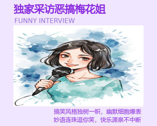 梅花:(带着标志性的幽默笑容)哈喽,各位亲爱的朋友们,我是梅花,不是那朵冬天开的花哦,是那个让你们笑到肚子疼,偶尔也让人哭笑不得的梅花!很高兴今天能在这里和大家聊天,希望咱们能一起愉快地度过这段时光!