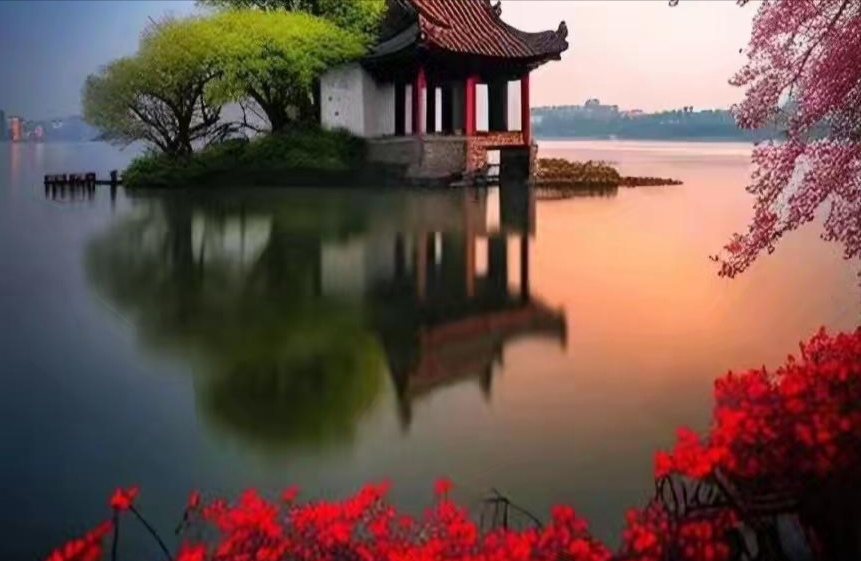 且惜当下:一帘月色映桃花面,半山杏雨润流年。人生长短皆为客,远近相安度流年。时光飞逝,往事淡然如烟,忘则随风,藏于心渊。故人不曾心头过,余生自有枫林晚照之美景。